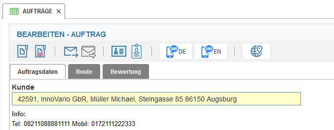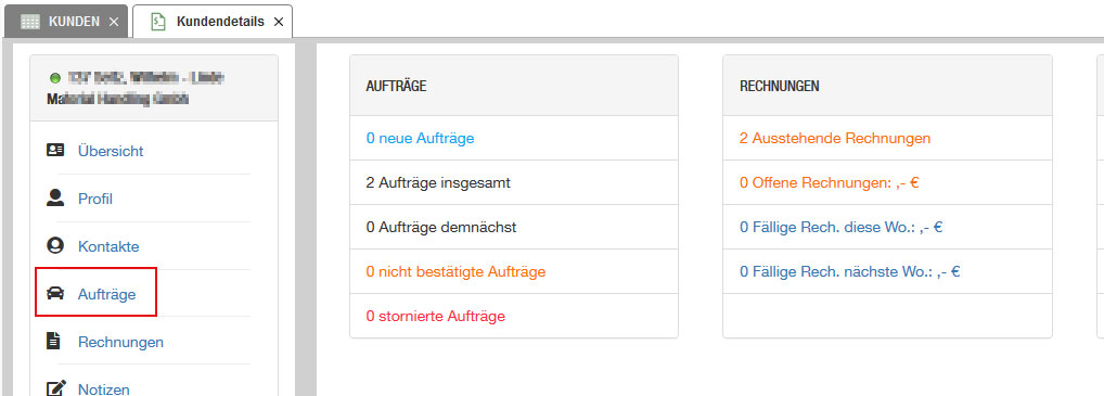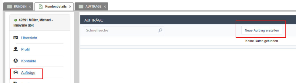 2. Klicken auf der Kunden Detailseite auf Aufträge