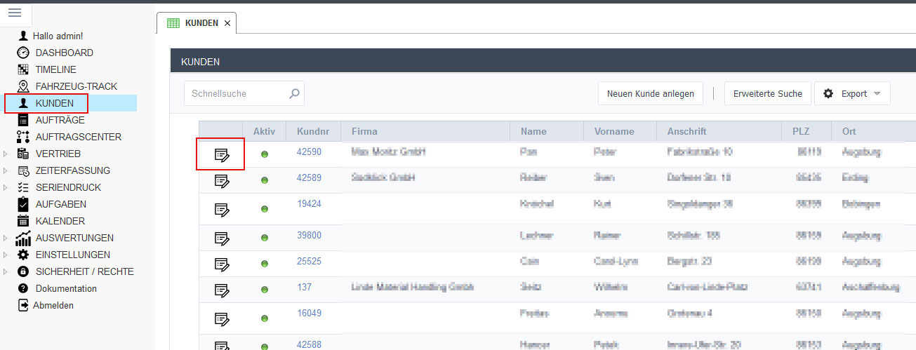1. Klicken Sie in der Kundenliste auf das Briefsymbol.